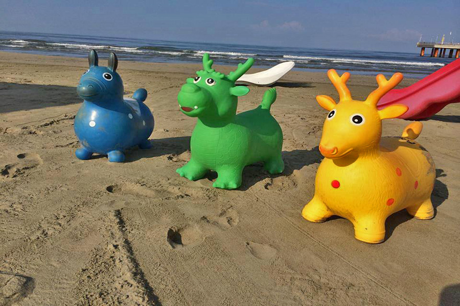 In riva al mare si trovano i giochi per i più piccini e speciali panchine, per permetterne la sorveglianza.